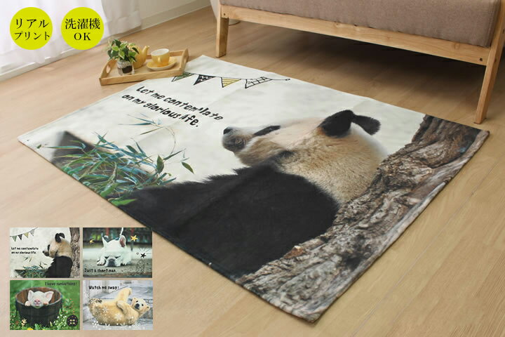 洗濯機で丸洗いできる ラグ マット 長方形リアルアニマルプリントカーペット約90×130cm ぱんだ・いぬ・ぶた・しろくまホットカーペット対応 床暖房対応 カーペット おしゃれ 洗える アニマル 動物 かわいい 人気 デザイン【5666709】