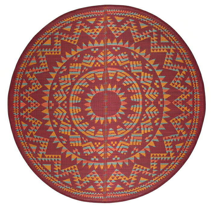 い草 ラグ カーペット 円形 円型 丸型 [アステカ - レッド 赤 / ブラウン 茶] 直径 180×180 cm 折り畳み 円型 マット シート 民族 エスニック アステカ オルテガ ボヘミア boho 天然素材 い草 マット 畳