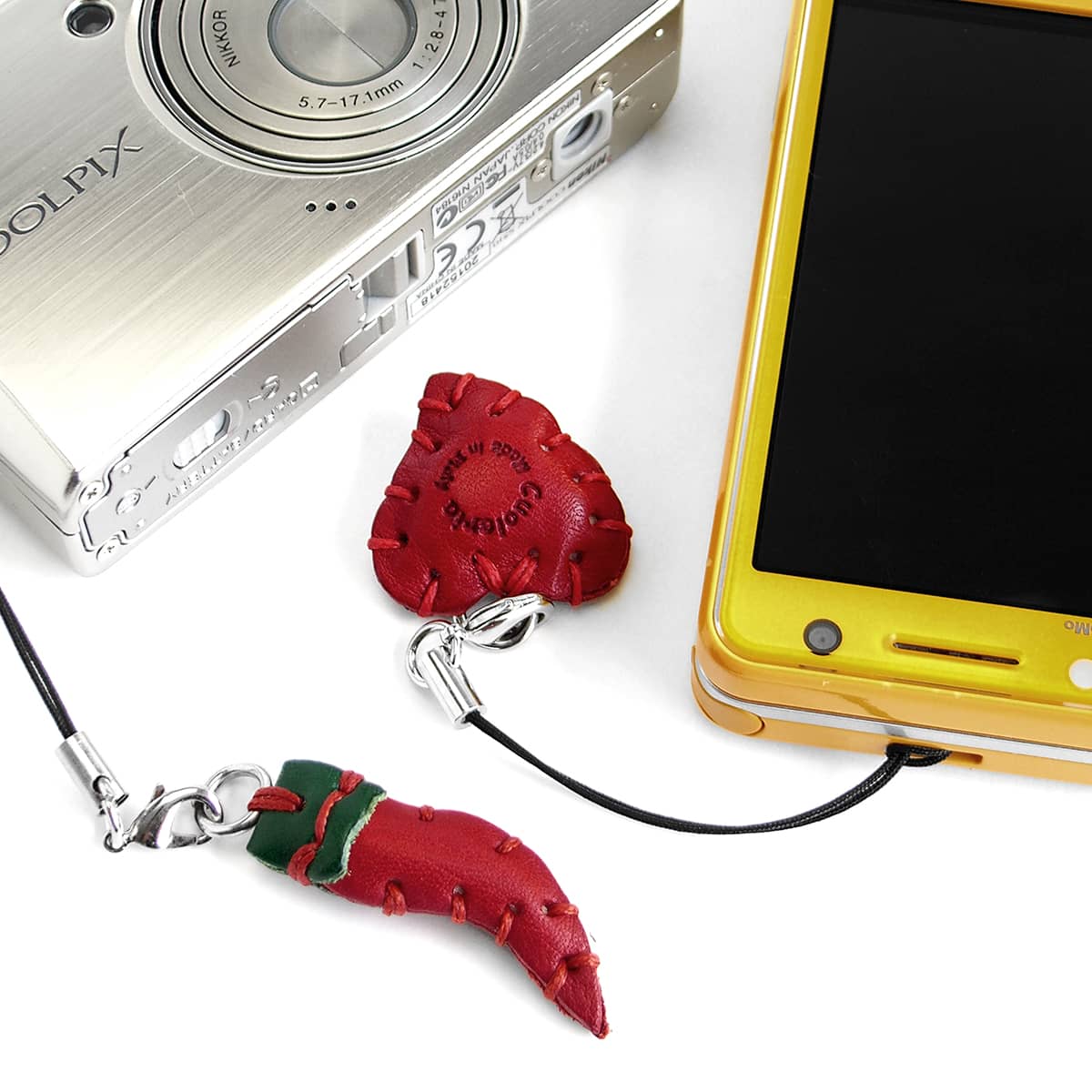 ■4点までメール便OK! (ラッピング・日時指定・他商品同梱不可) Cuoieriaのレザーキーホルダー&ストラップ キュートなモチーフが人気のレザーキーホルダー 携帯電話・モバイル機器のアクセサリーに最適なレザーストラップシリーズ ■Cuoieriaのストラップに ■イヤホンプラグが付きましたスマホ(スマートフォン)にも取り付けOK!イヤホンジャックアクセサリーとしても使えます。