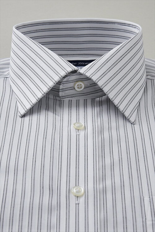 ●使用生地について 白地にグレーのストライプが入った日本製形態安定素材を使用。